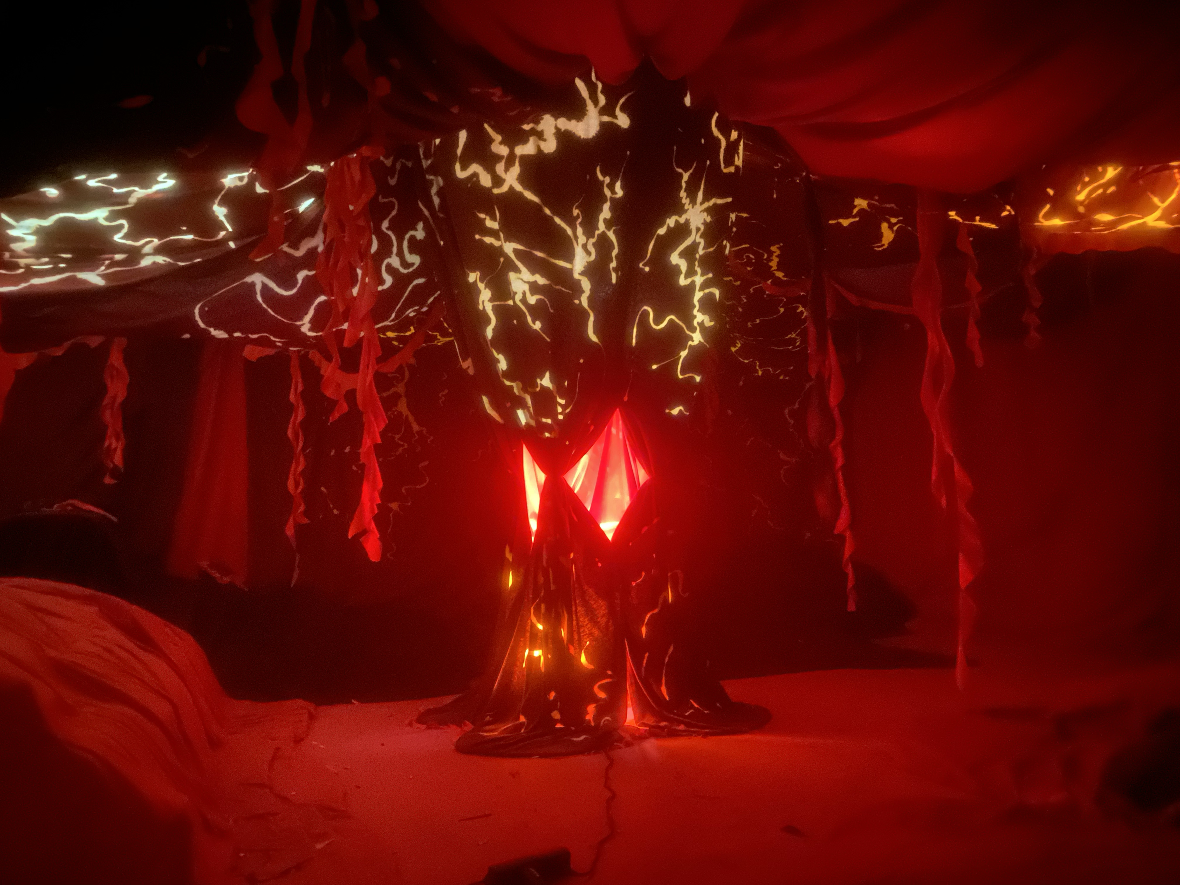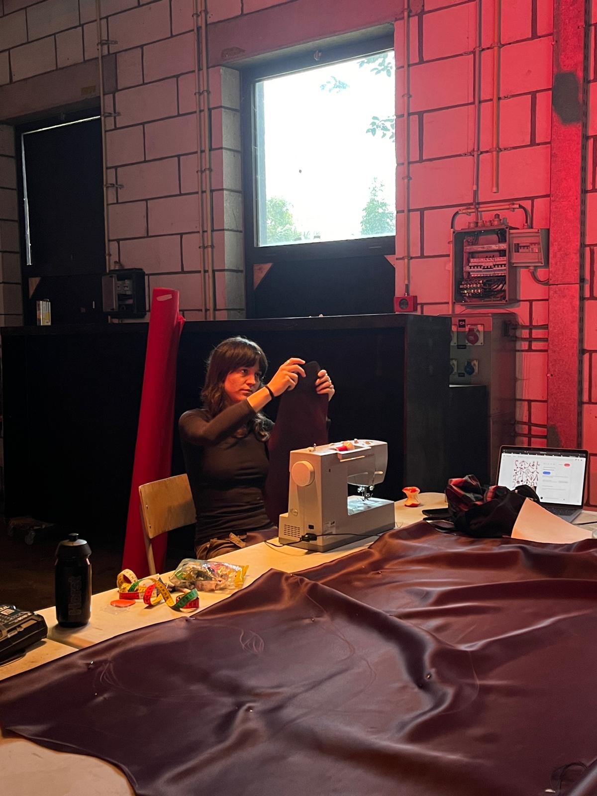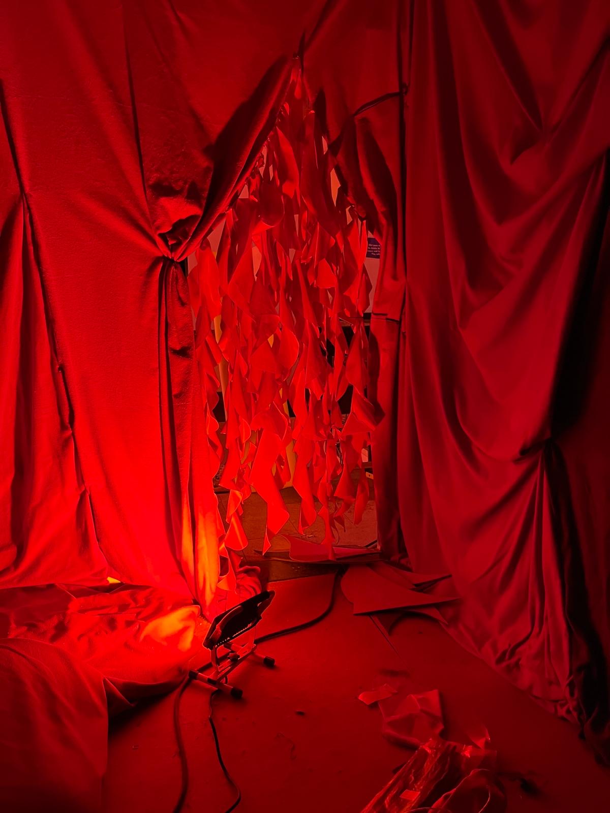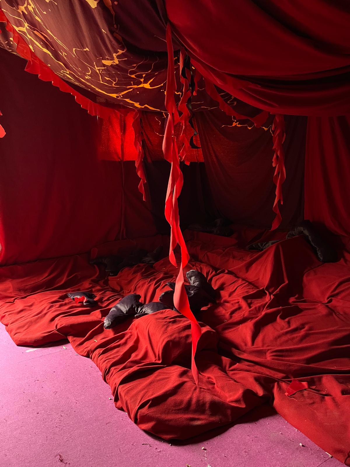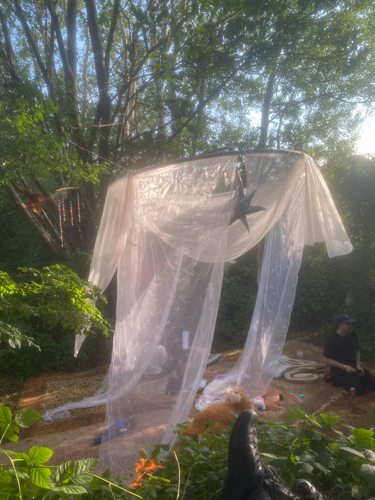 Textile installation for Klub Dramatik Festival 2025. Together with Eline Dewit, we had the amazing opportunity to build an off-space, hidden in the woods of Klub Dramatik. The space was meant as a calmer sanctuary, an alternative environment to escape the high energy of the dancefloor, for those who needed some rest, a big or small talk, a nap, or just some recharging the legs in between dancing.