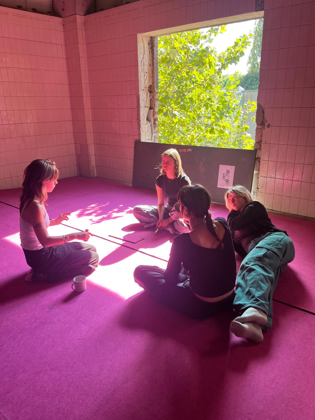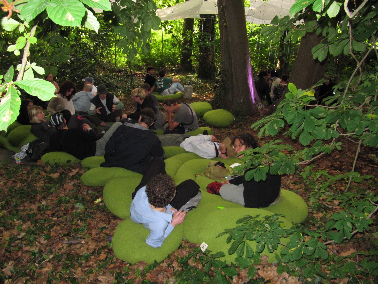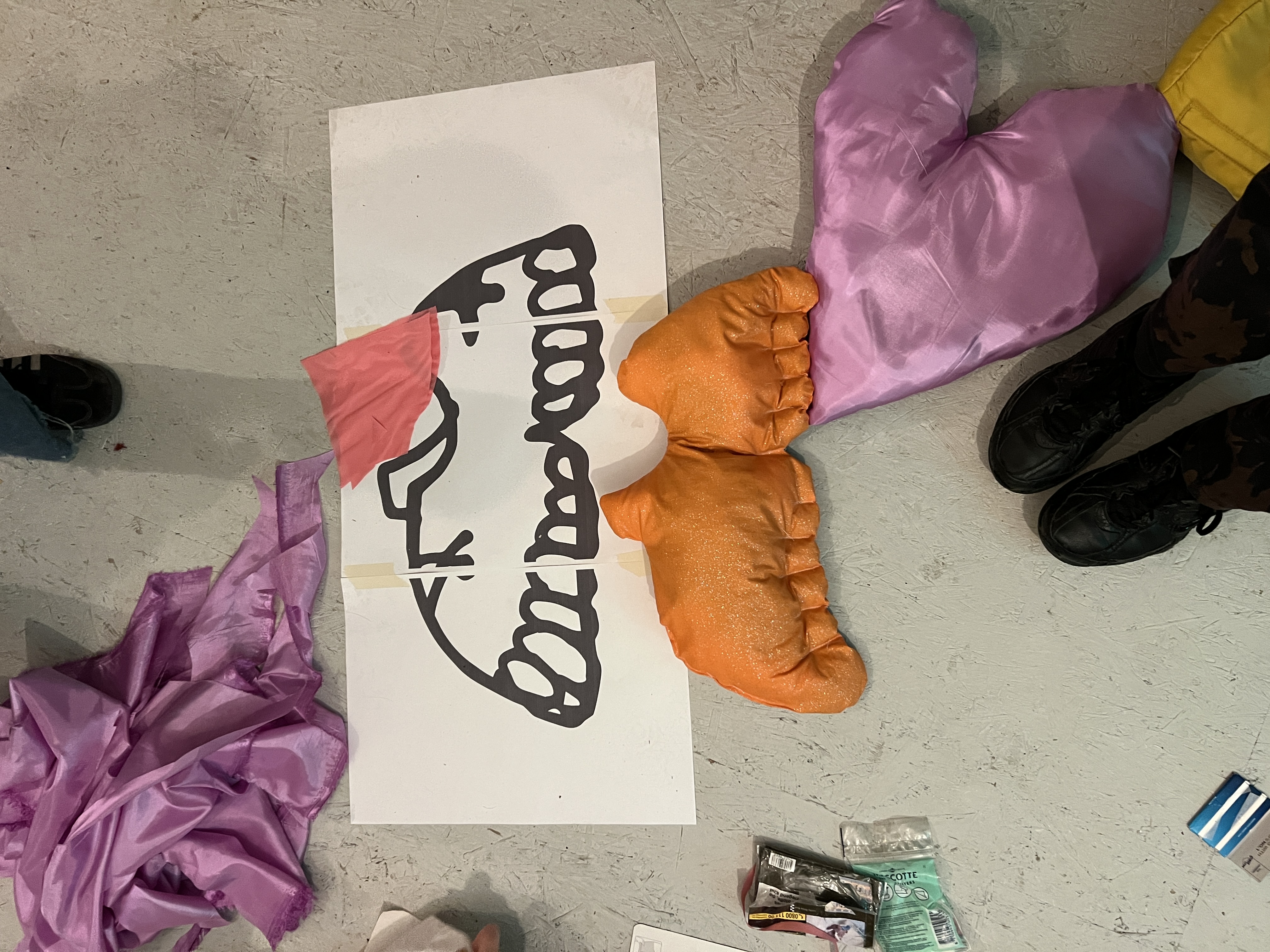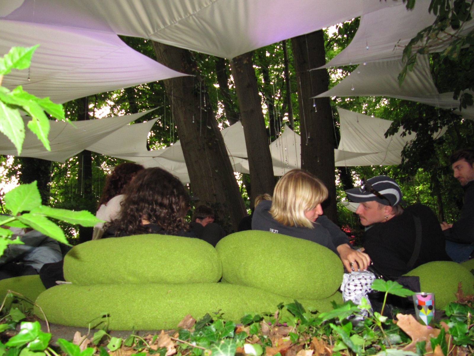 Textile installation for Klub Dramatik Festival 2025. Together with Eline Dewit, we had the amazing opportunity to build an off-space, hidden in the woods of Klub Dramatik. The space was meant as a calmer sanctuary, an alternative environment to escape the high energy of the dancefloor, for those who needed some rest, a big or small talk, a nap, or just some recharging the legs in between dancing.