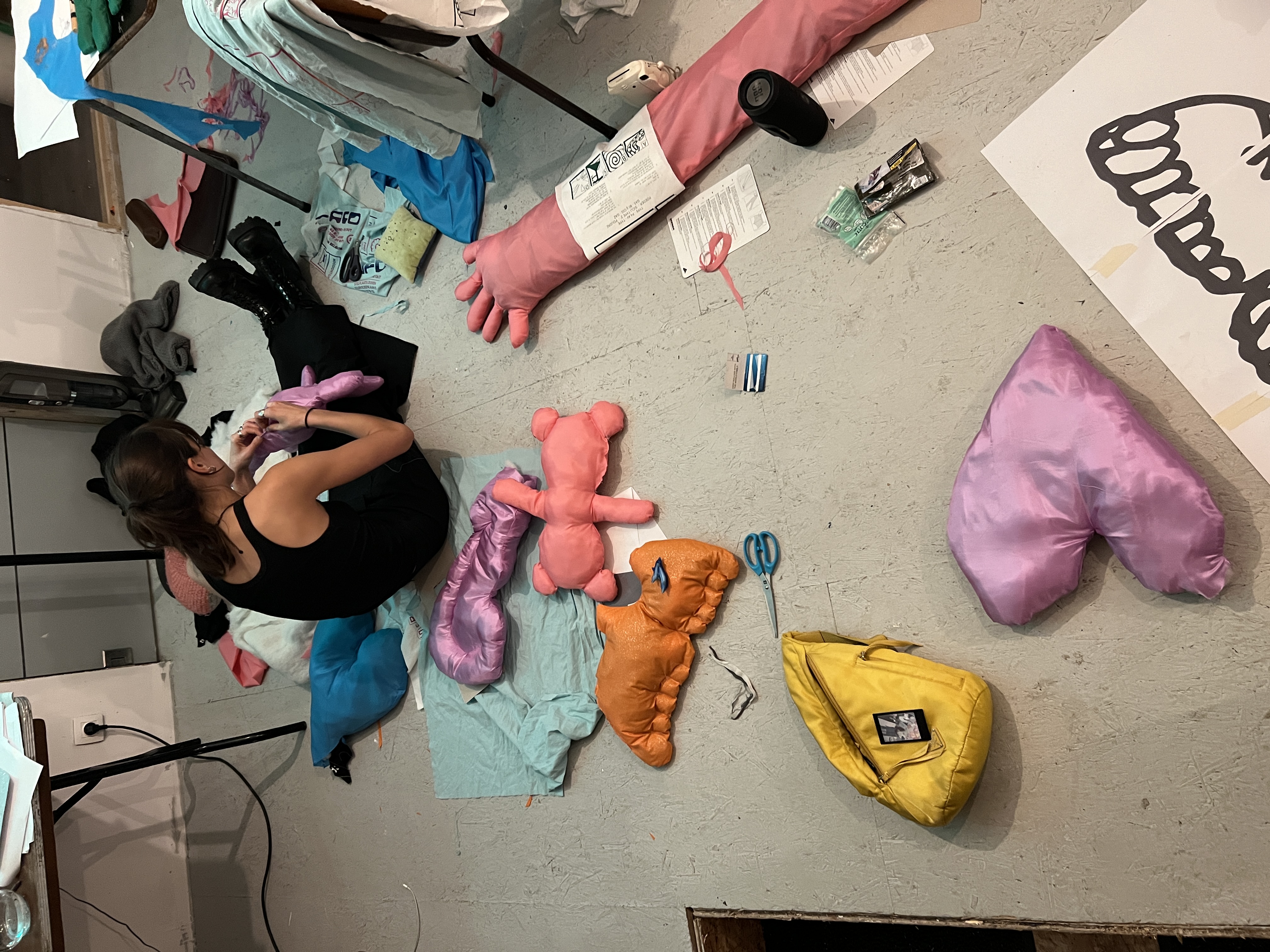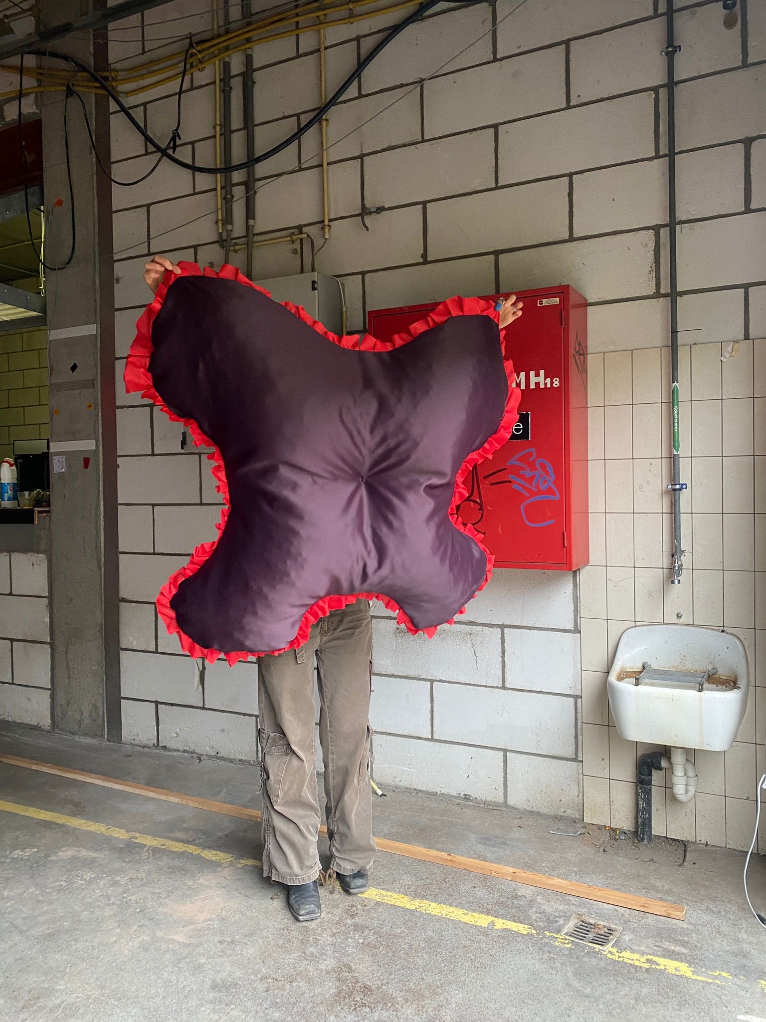 In October 2022 I participated in the Design Lab week organised by Horst and Nachtplan, at Stelplaats in Leuven. Our focus was to build a visual identity for this new club, that didn’t exist yet. The workshops were guided by Nana Esi & Sophie Keij from Atelier Brenda. As I like to work a lot with textiles my goal was to bring something tactile into the club, supporting the graphic identity created that week. I created these pillows based on scetches we made on the first day. It was an experiment to see what people would do with them, and how they would be used during the party.