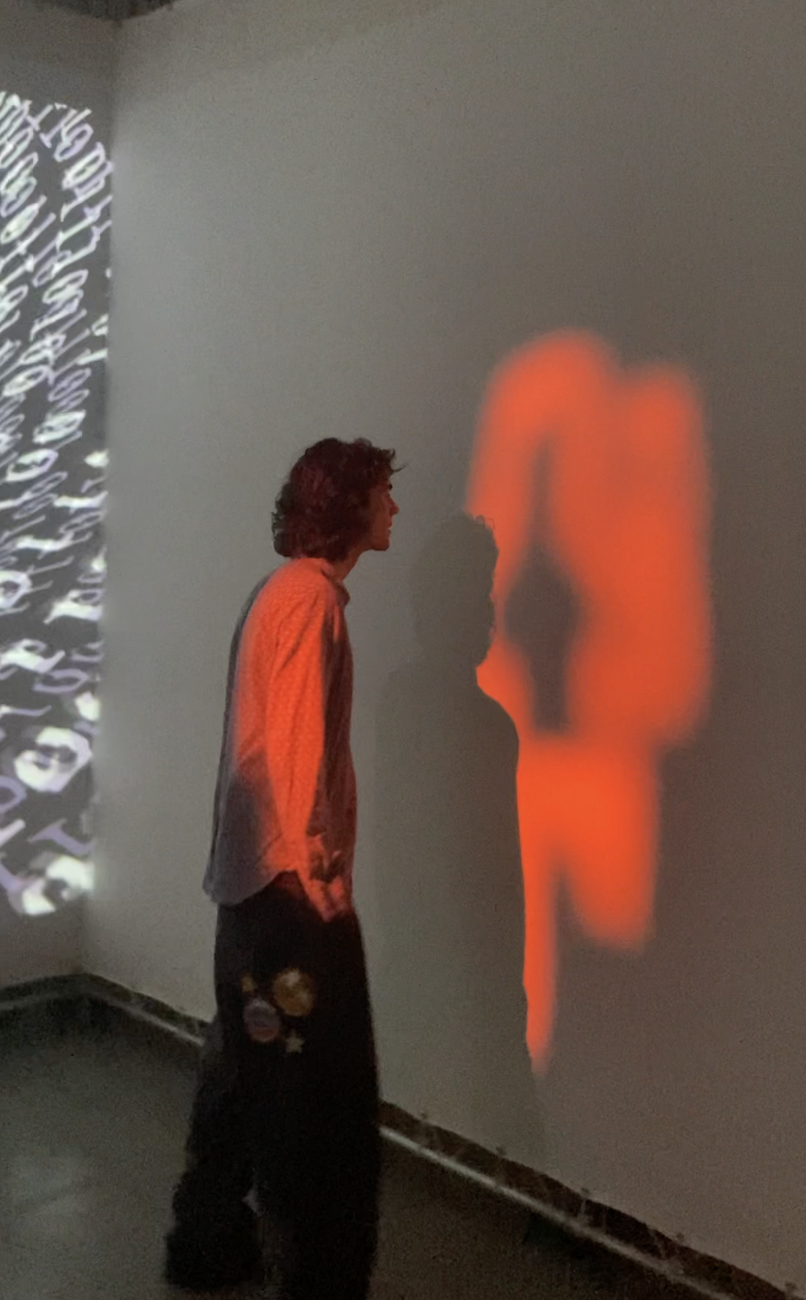 This was my first experiment using Touchdesigner Software, where I created an interactive projectory installation at the Spatial Computing Lab in Luca School of Arts. The premise was to ‘materialize the invisible’. The concept of time became the central point of this installation. It depicted the silhouettes from people that visited the space, with a delay of 2 minutes. Through this method, you would be able to look ‘into the past’, to people that visited before you, or yourself from 2 minutes ago.