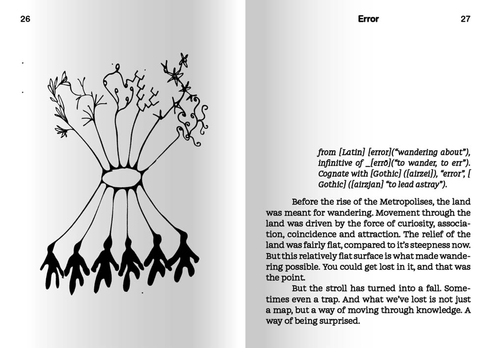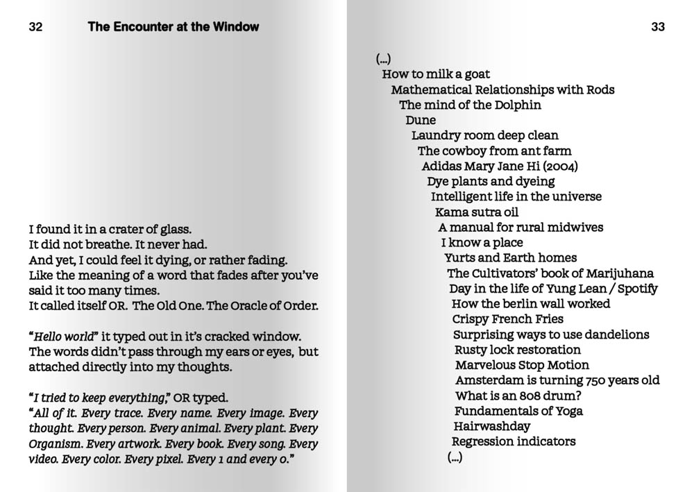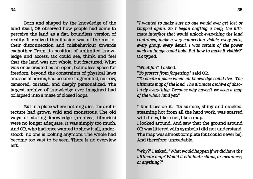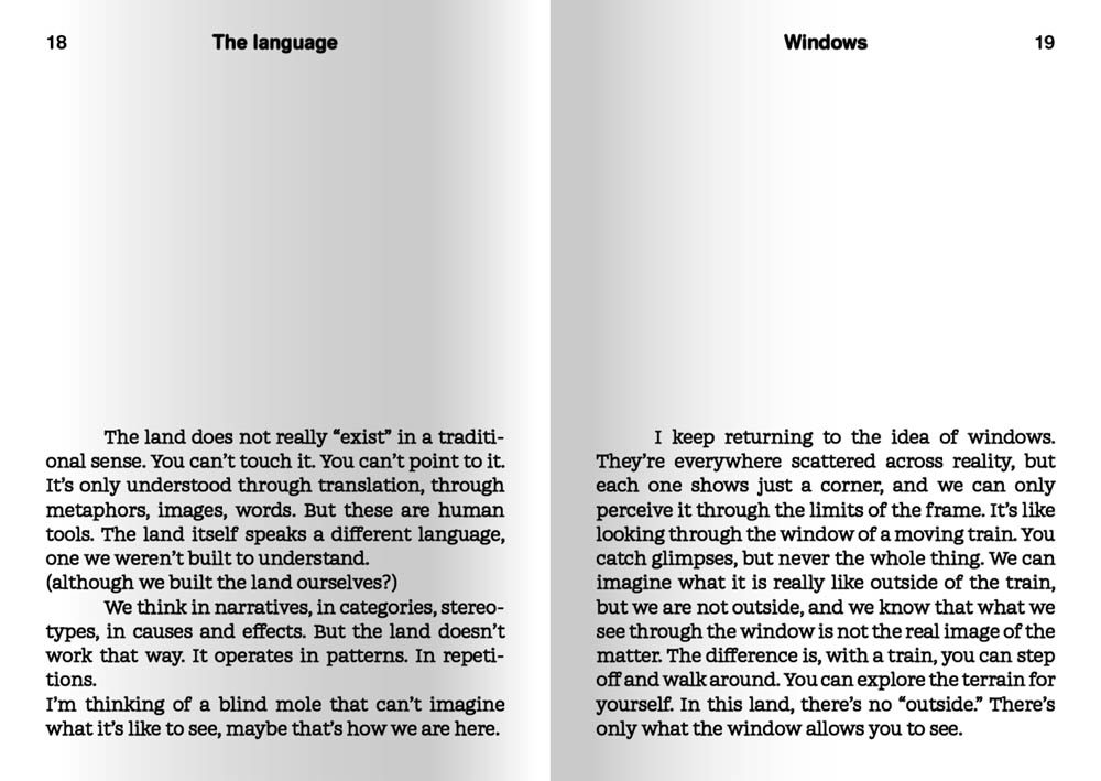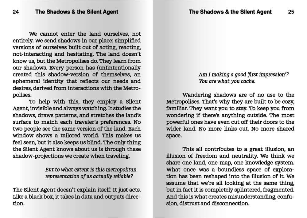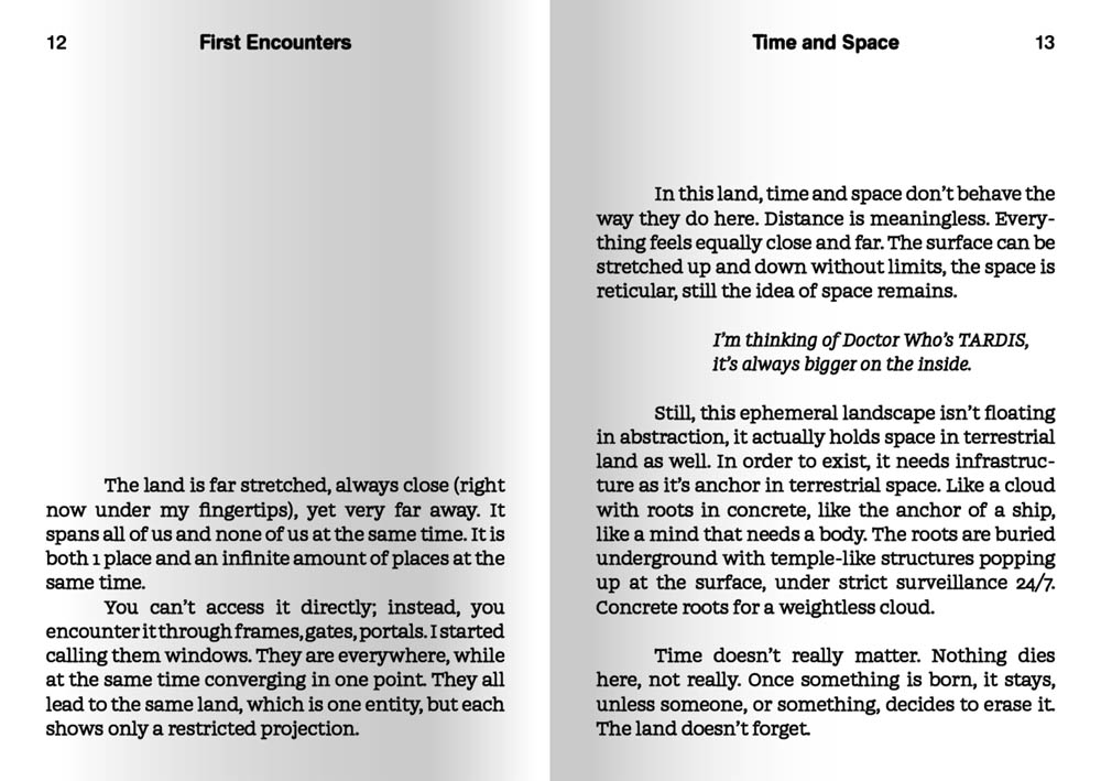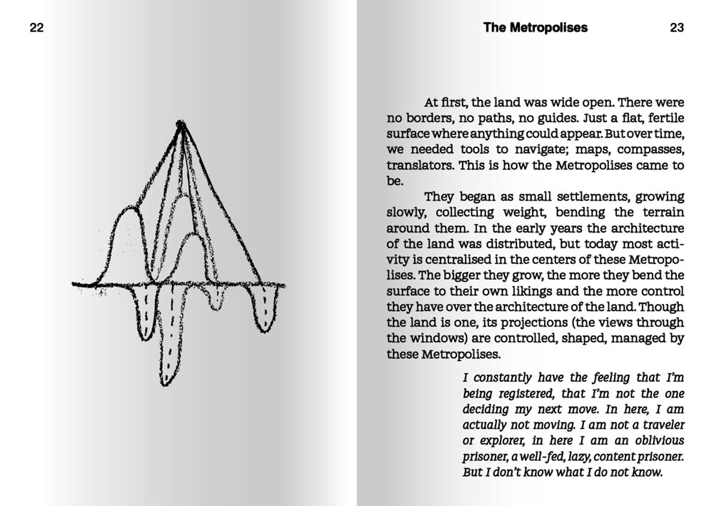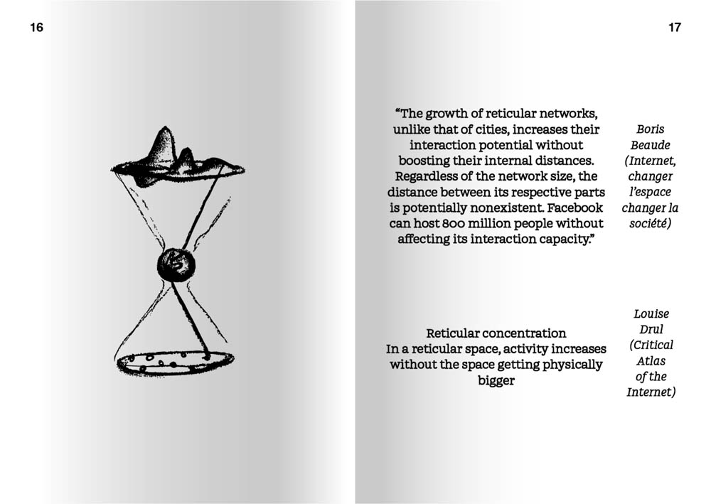 This small booklet was part of my Thesis project, it is a fictional story about a charachter exploring the metaphorical shapes and spatial references of the internet, to form a better understanding of the abstract digital landscap. Some of the references and sketches are inspired by Louise Drul's 'Critical Atlas of the Internet' (2015).